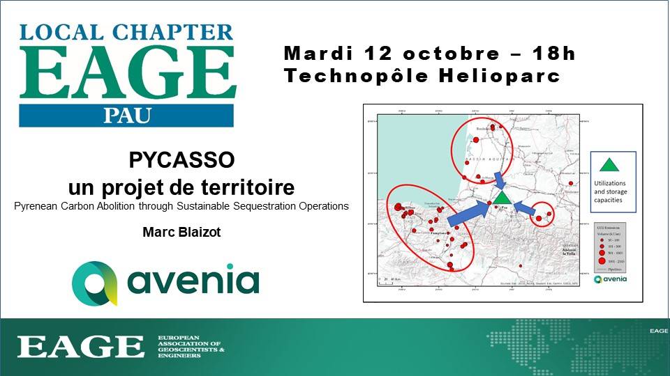 Le 12 octobre à 18h, Marc Blaizot proposera à la section locale de l’EAGE à Pau (Amphithéâtre d’Hélioparc) une conférence sur le projet PYCASSO : un projet de territoire pour la capture, utilisation et stockage géologique de CO2en Aquitaine. Une vingtaine d’entreprises et d’institutions françaises et espagnoles se sont regroupés autour du pôle AVENIA pour construire un projet de territoires baptisé PYCASSO. Il s’agit d’un projet pour réaliser un centre dédié à la capture du CO2, son transport, son utilisation sur la plateforme industrielle de Lacq et la séquestration souterraine du reliquat dans des champs de gaz naturel épuisés d’Aquitaine. Les émissions actuelles de CO2 sont de 5 Mt/an dans le Sud-Ouest de la France et de 8 Mt/an dans le Nord-Ouest de l’Espagne. Les principaux champs épuisés (Lacq, Meillon et St Marcet) peuvent permettre le stockage de 600 Mt de CO2 soit plus de 45 ans des émissions totales actuelles. Ce travail bénéficie d’ores et déjà d’une aide des acteurs institutionnels régionaux, et le consortium PYCASSO se positionne sur les appels d’offres nationaux et européens de début 2022. PYCASSO pour : PYrenean Carbon Abolition through Sustainable Sequestration Operations. Afin de pouvoir se retrouver après la conférence autour d'un verre et de quelques produits régionaux, le pass sanitaire vous sera demandé pour respecter les mesures en vigueurs. |