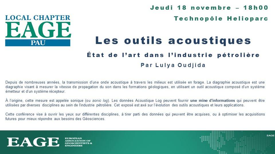 Conférence EAGE Local Chapter : les outils acoustiques | 18 novembre 2021 - Hélioparc, Pau