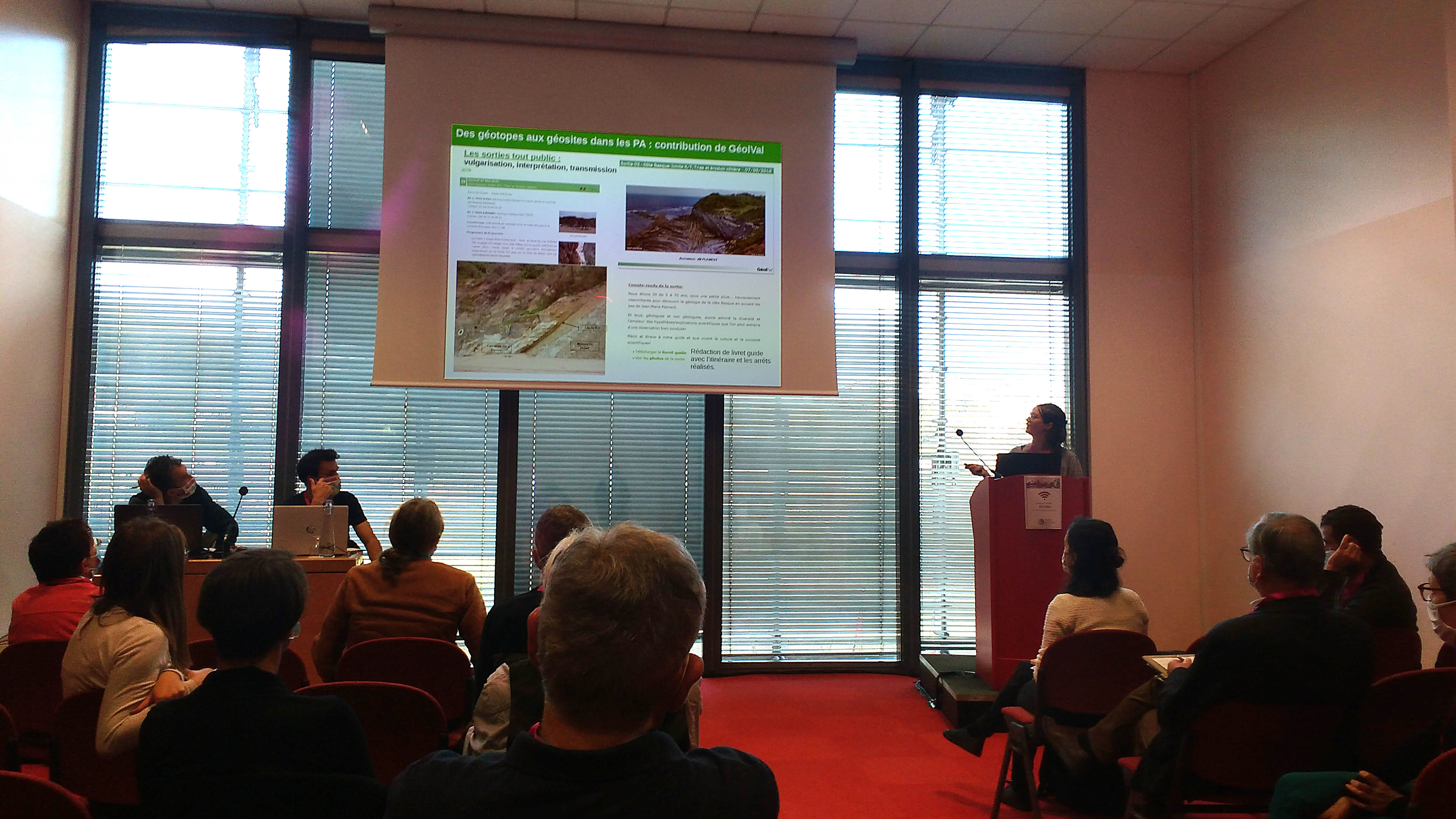 A l'occasion de la Réunion des Sciences de la Terre qui s'est tenu à LYON du 2 au 5 novembre derniers, Audrey Billerot et Marc Blaizot sont intervenus sur les thèmes du géotourisme et des métaux pour la transition énergétique. Voici le compte-rendu d'Audrey Billerot : Durant la semaine intense du congrès à Lyon, j’ai représenté GéolVal en exposant ses activités dans la session « Les outils de la protection, de la vulgarisation et du géotourisme ». L’accueil a été chaleureux et les échanges très intéressants. La participation à cette session et au forum sur les Géoparcs et le géotourisme m’a permis de découvrir d’autres pratiques de géotourisme, notamment avec la visite du Geopark du Beaujolais. En parallèle de ces thèmes en rapport avec les activités de notre association, les différentes présentations des chercheurs dans les sessions scientifiques m’ont permis d’apprendre les dernières avancées sur le fonctionnement du manteau, la signification des minéralisations dans les roches basiques des Alpes ou l’interprétation géodynamique du séisme du Teil… Le forum sur les métaux de la transition énergétique organisé par Marc Blaizot fut aussi une grande réussite et a permis de comprendre des enjeux d’actualité brûlante. Une Réunion des Sciences de la Terre très stimulante ! Merci pour cette expérience. |