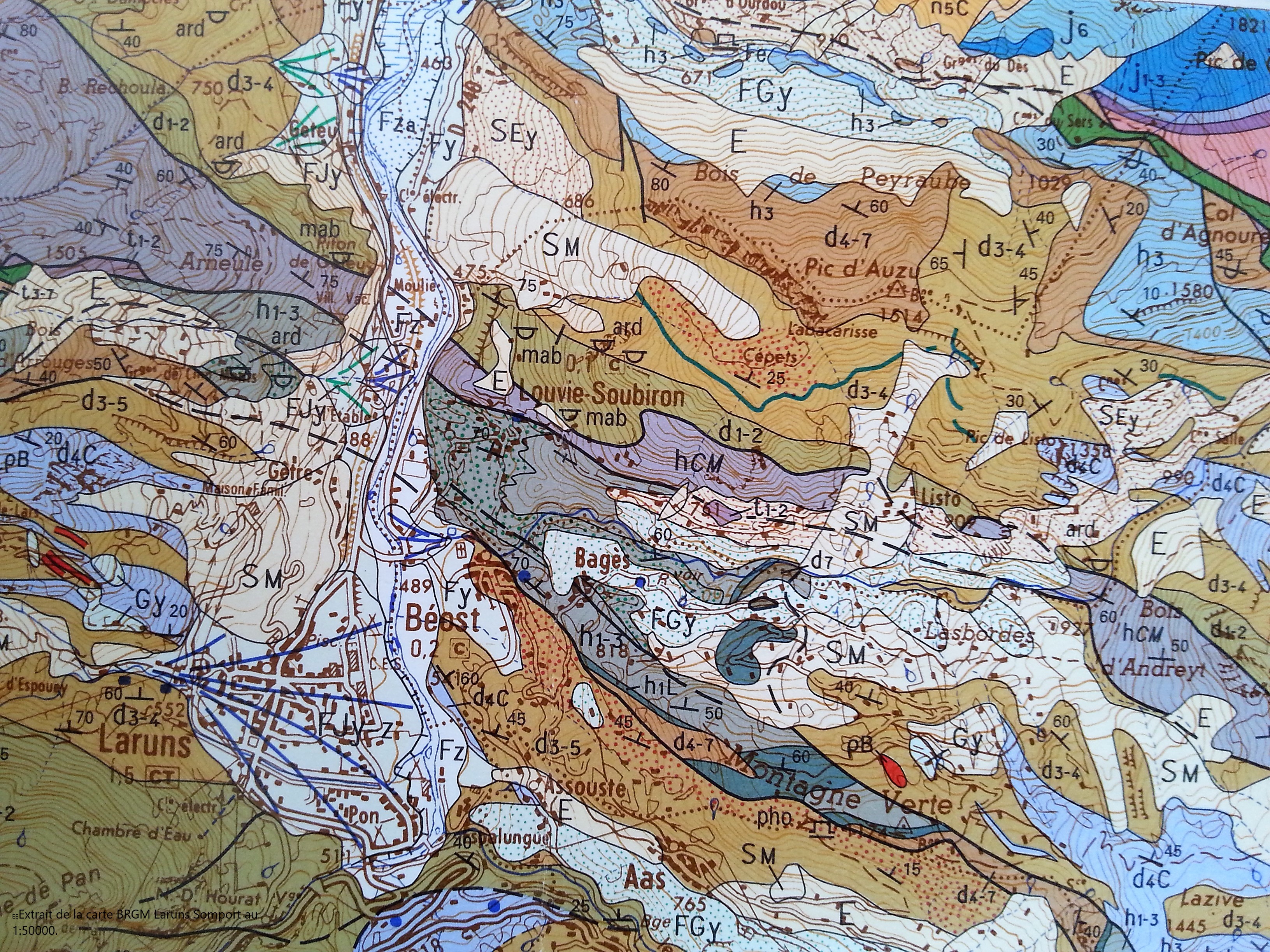Nous étions 44 accueillis en mairie d’IZESTE, avec en démonstration nos acquisitions et réalisations récentes : la nouvelle loupe binoculaire et son grand écran destiné à faciliter nos futures animations et une maquette en vraie grandeur des installations prévues en gare de Bedous, dans le cadre du projet GéoTrain. Lien vers la galerie de photos de PEM L’après midi, sous la conduite d’Yves et sous un soleil radieux nous avons visité le site des carrières de marbre de Louvie Soubiron, selon les 2 optiques : géologique et patrimoniale. Les marbres de Louvie-Soubiron sont situés dans des calcaires de la base du Dévonien (410 MA) d1,2- Lokhovien-Fraguien, calcaires à entroques, alternances de pélites, calcaires massifs largement recristallisés de teinte blanche. Le circuit des carrières, créé par la commune de Louvie Soubiron en partenariat avec le Parc national des Pyrénées, la Communauté de communes de la vallée d’Ossau et le Pays d’art et d’histoire des Pyrénées béarnaises, a été inauguré en septembre 2017. Il valorise cet important patrimoine marbrier. Merci à Philippe pour son magnifique reportage photo Et aussi à Pierre-Emmanuel